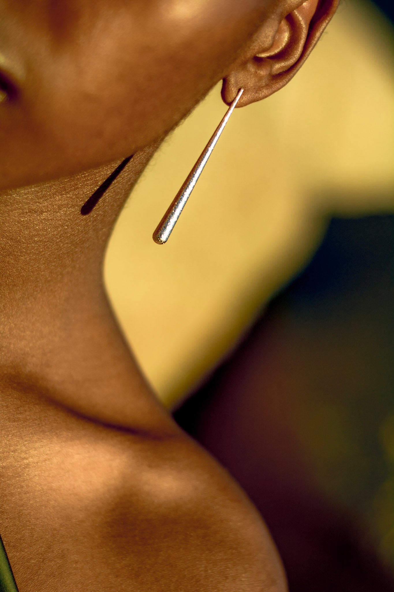 Minimalist yet striking, the Okati Earrings draw their name from the Oshiwambo word Okati, meaning “stick.” Inspired by the elegance of simple, elongated forms, these earrings bring effortless sophistication to any look